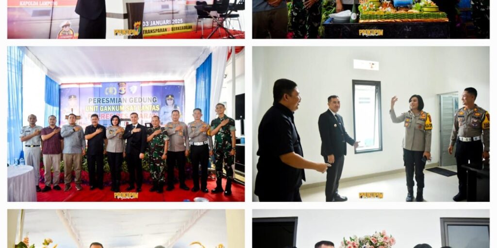 Pesawaran, 3 Januari 2025 – Bupati Pesawaran Dendi Ramadhona meresmikan Kantor Unit Penegakan Hukum (Gakkum) Satuan Lalu Lintas (Satlantas) Polres Pesawaran yang berlokasi di Jalan Ahmad Yani, Desa Sukaraja, Kecamatan Gedong Tataan pada Jum’at, (3/1/2025).